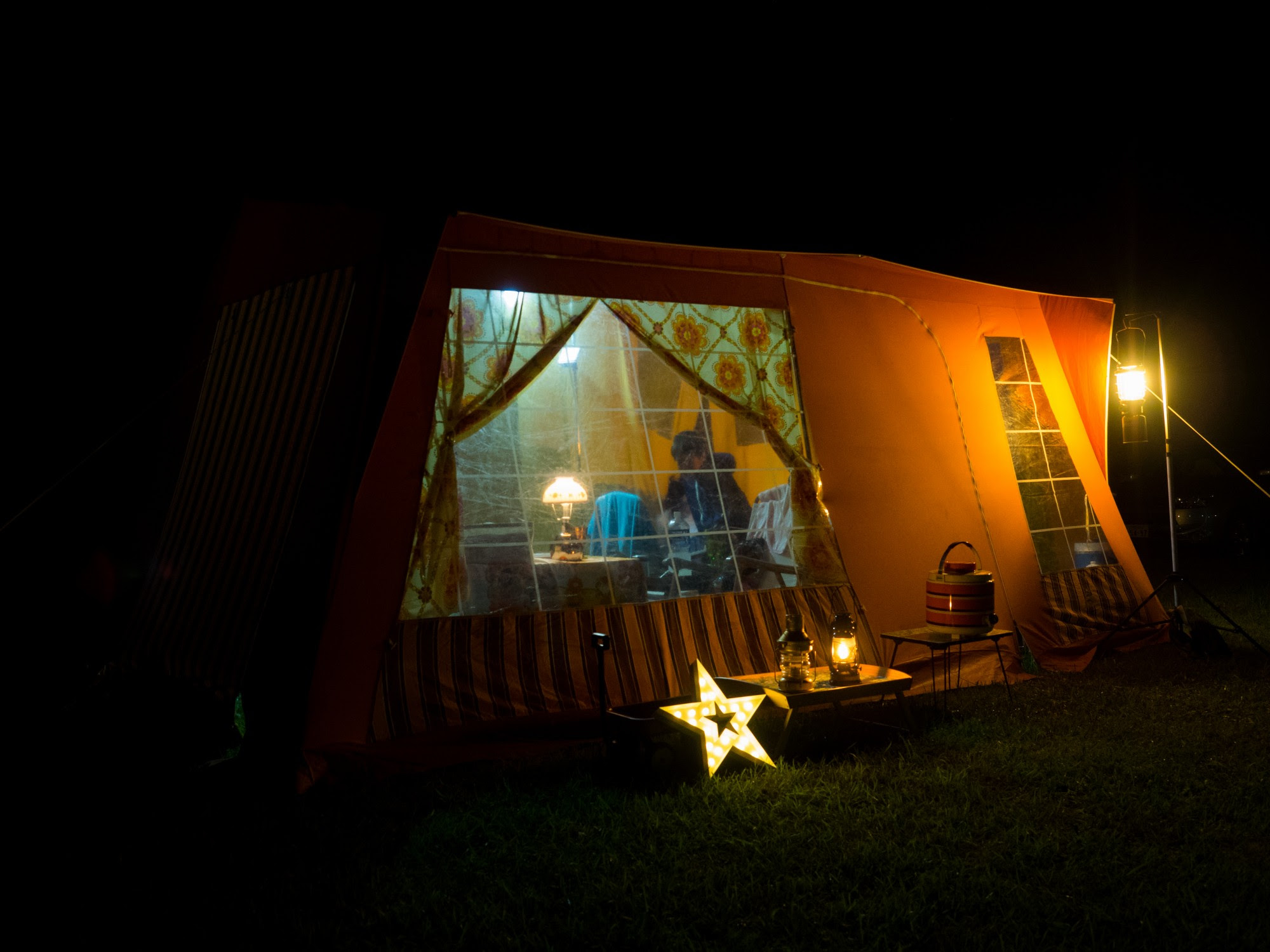 楽しい夜のステージが終わった後は、それぞれのサイトに戻ってファミリーで語らう時間。この夜は満天の星空も楽しむことができた。